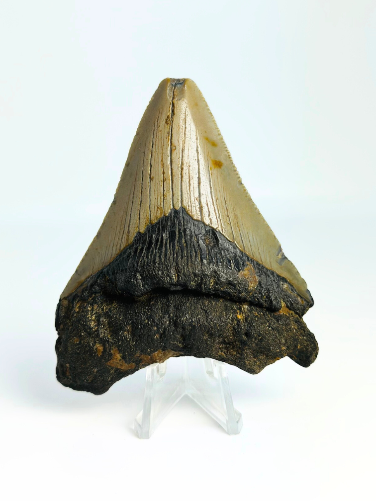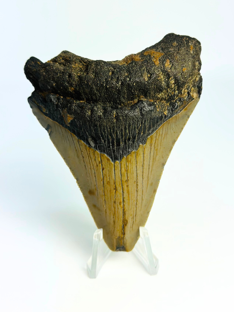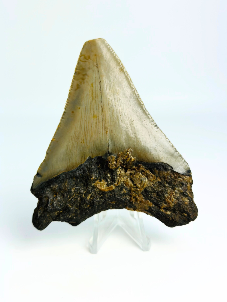 Der Besitz eines Megalodon-Zahns bietet eine außergewöhnliche Gelegenheit, ein Stück Vorgeschichte in die Hände zu bekommen. Der Megalodon-Zahn ist ein schönes, seltenes und wertvolles Fossil. Darüber hinaus sind diese Zähne eine einzigartige Ergänzung für jede Sammlung und ein wunderbares Gesprächsthema.