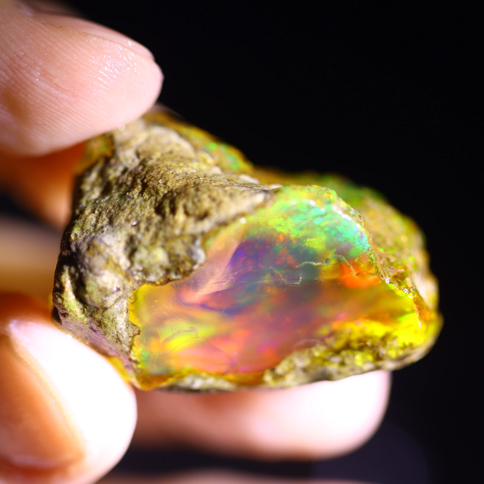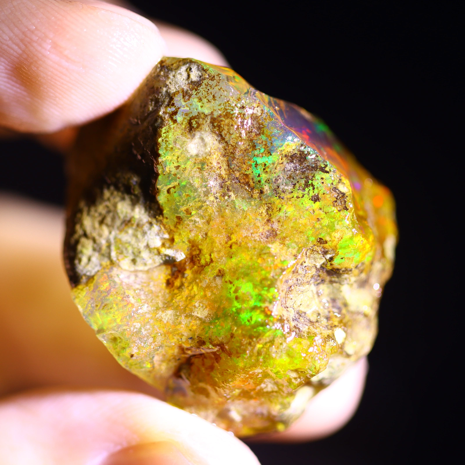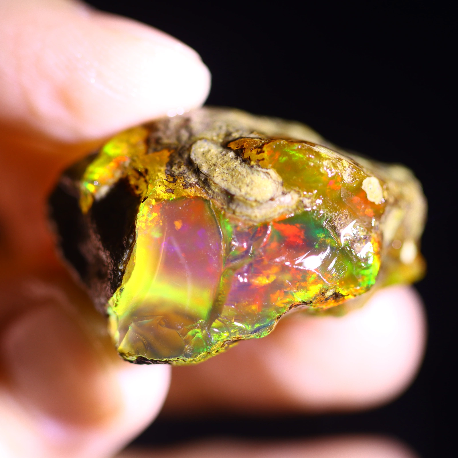 Dieser einzigartige Rohkristallopal, der in Äthiopien gefunden wurde, weist eine noch nie dagewesene Farbpalette auf. Kristallopale profitieren am meisten davon, wenn sie feucht gehalten werden. So kommen auch die schönsten Farben zum Vorschein. Dieser geheimnisvolle Rohopal ist eine perfekte Ergänzung für jede Sammlung. Diese Opalvarietät wird für ihr schönes Farbenspiel geliebt. Wie Sie auf dem Bild sehen können, hat der Opal ein schönes raues Aussehen mit ausgeprägten Farben.