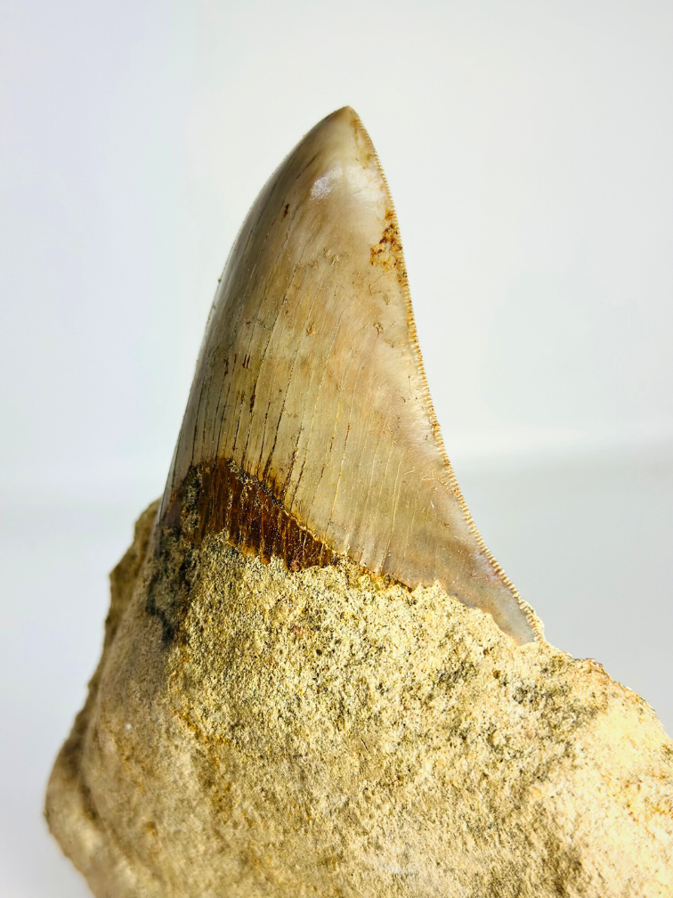 The Megalodon is an ancient and extinct species of shark that ruled our oceans millions of years ago. The Megalodon was an Apex predator and had few or no equals. Below, we would like to give some reasons why a Megalodon tooth is so special: