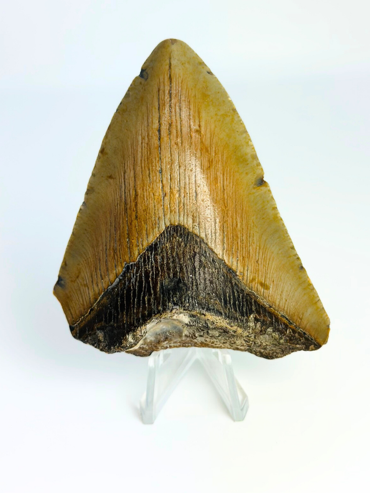Poseer un diente de Megalodon ofrece una oportunidad excepcional de tener un pedazo de la prehistoria en sus manos. El diente de Megalodon es un fósil bello, raro y valioso. Además, estos dientes son un complemento único para cualquier colección y una magnífica apertura para un tema de conversación.