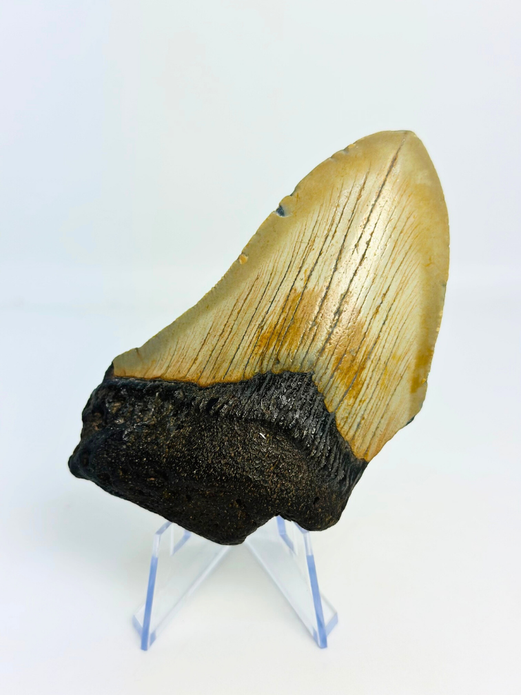 Poseer un diente de Megalodon ofrece una oportunidad excepcional de tener un pedazo de la prehistoria en sus manos. El diente de Megalodon es un fósil bello, raro y valioso. Además, estos dientes son un complemento único para cualquier colección y una magnífica apertura para un tema de conversación.