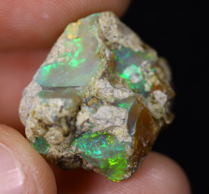Los ópalos Welo etíopes en bruto son hermosas piedras preciosas conocidas por sus colores y diseños únicos y llamativos. Estos ópalos, que se encuentran en las montañas de Etiopía, son apreciados por coleccionistas y amantes de las piedras preciosas de todo el mundo. Se distinguen por sus juguetones colores iridiscentes, siendo los más comunes el amarillo, el azul y el verde, pero también pueden ser rosas, naranjas, rojos y morados.