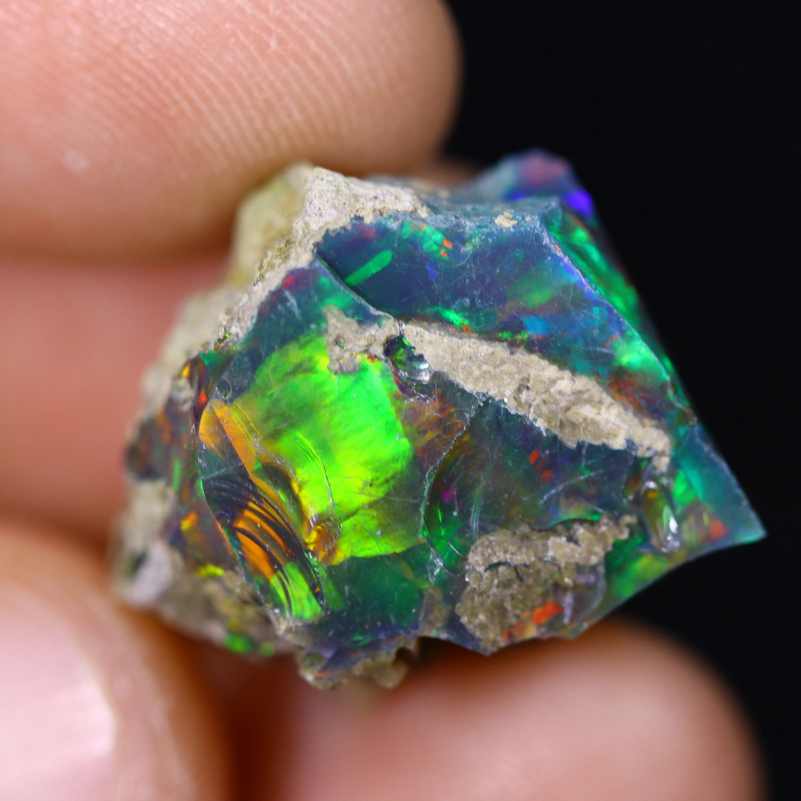 Este hermoso ópalo, hallado en Etiopía, muestra una paleta de colores sin precedentes. Este misterioso ópalo no puede faltar en ninguna colección. Los colores profundos y brillantes hacen que el ópalo no sólo sea misterioso, sino también raro. Como puede verse en la foto, el ópalo tiene un aspecto maravillosamente liso con colores bien definidos.