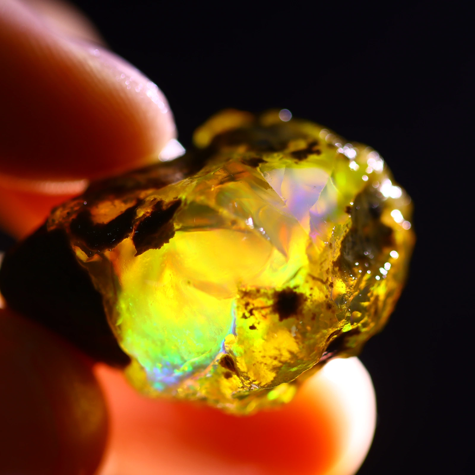 Cette opale de cristal brute unique, trouvée en Éthiopie, présente une palette de couleurs sans précédent. Les opales de cristal gagnent à être maintenues humides. Cela permet également d'obtenir les meilleures couleurs. Cette mystérieuse opale brute est un complément parfait à toute collection. Cette variété d'opale est appréciée pour son magnifique jeu de couleurs. Comme vous pouvez le voir sur la photo, l'opale a un bel aspect brut avec des couleurs distinctes.