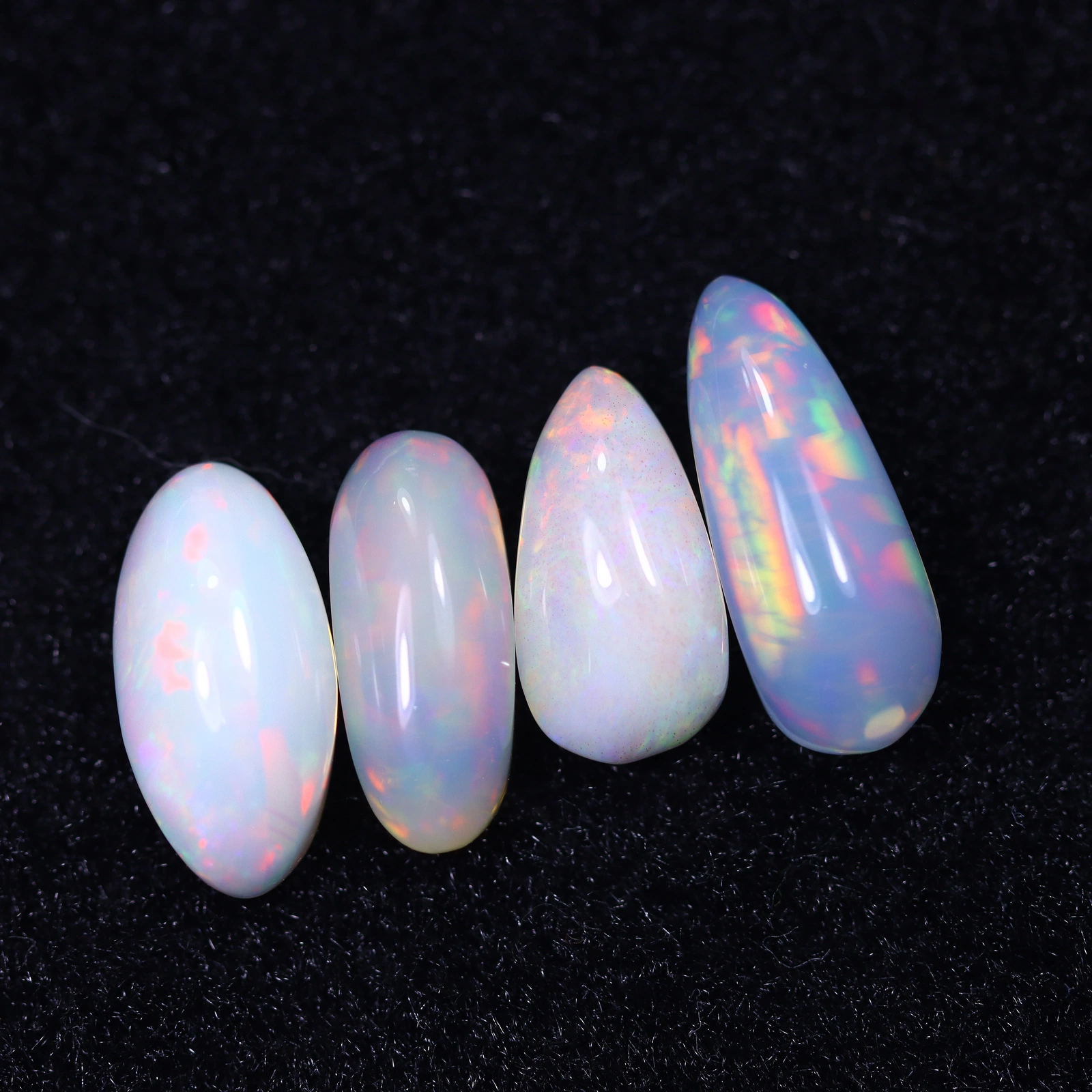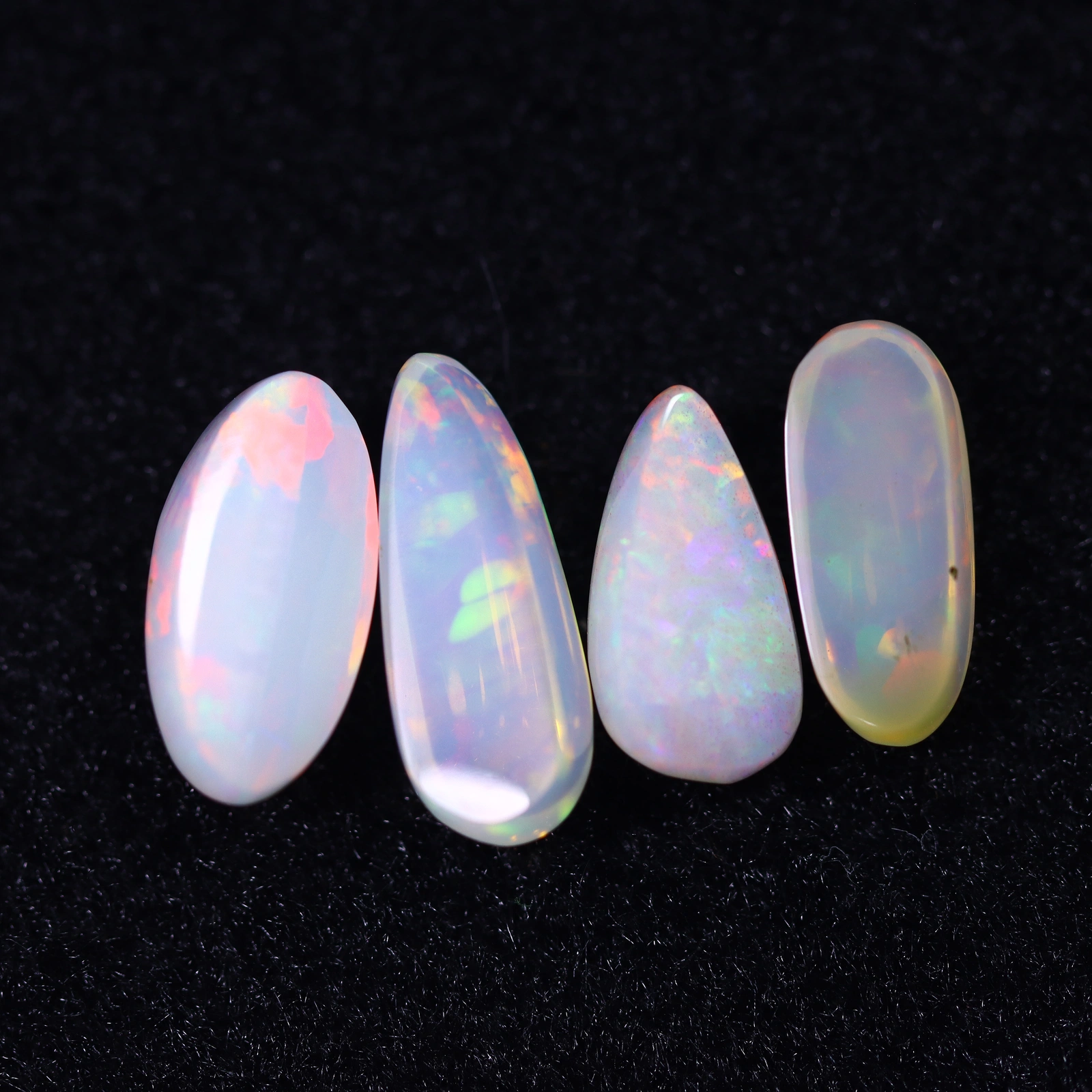 Deze prachtige geslepen opaal, gevonden in Ethiopië, vertoont een ongekend kleurenpalet. de opalen vertonen een betoverende regenboogschittering bij lichtinval. Hun langwerpige ovale vormen zijn perfect gepolijst met heldere translucentie. Deze opaal is een perfecte toevoeging aan elke collectie.